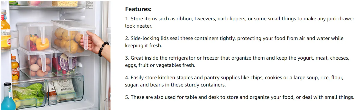 Large food storage container storage food, cans, and organize small parts, save space for refrigerator, freezer, table, cabinet, desk