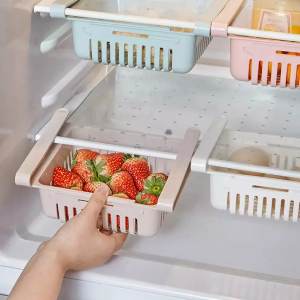 Product details of Set of 2 and 3 Stretchable fridge organizer baskets Maximize Your Fridge Space with adjustable space saver storage basket kitchen accessories basket for fridge kitchen gadget basket for kitchen